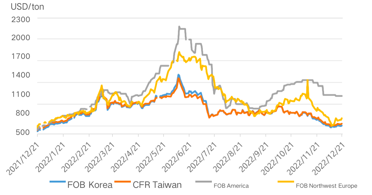 انواع من | FOB كوريا | CFR تايوان ، الصين | FOB الولايات المتحدة الأمريكية | سيف أوروبا |