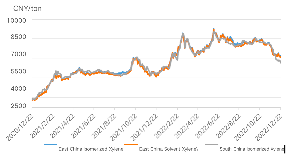 الشكل 2. مخطط اتجاه سوق الزيلين المتماثل في آسيا وأمريكا وأوروبا من 2021 إلى 2022