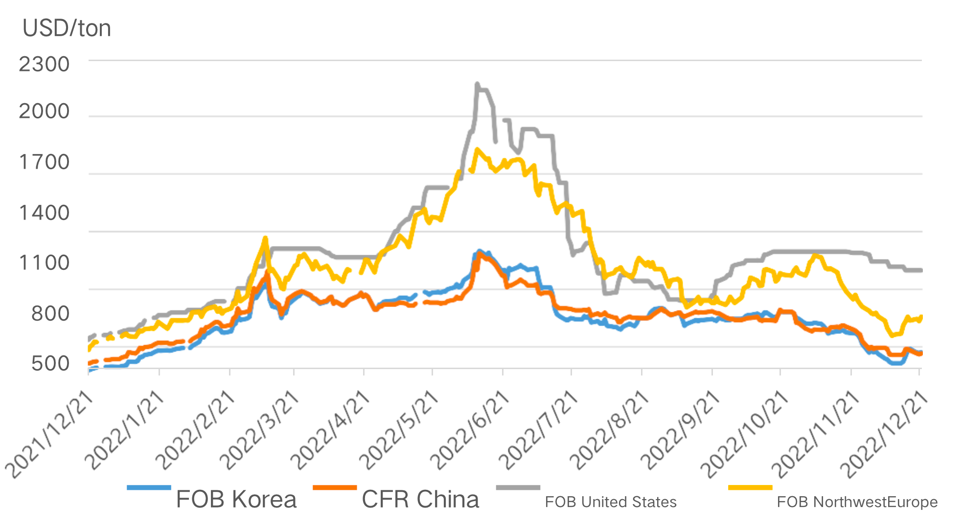 انواع من | FOB كوريا | CFR الصين | FOB الولايات المتحدة الأمريكية | FOB أوروبا |